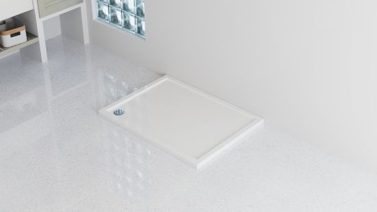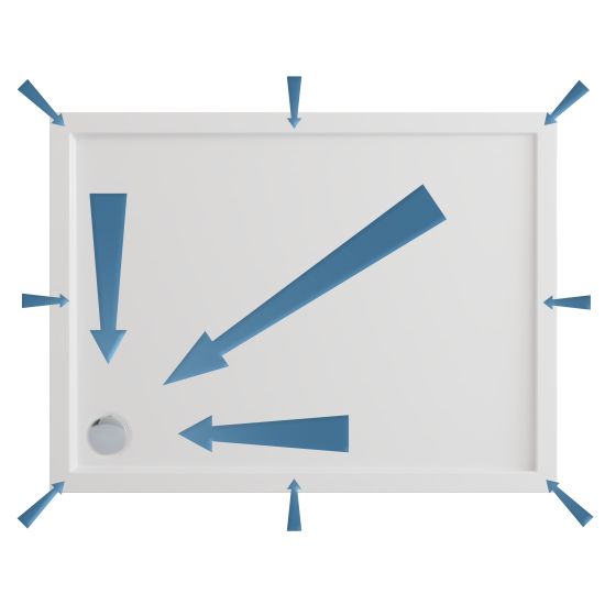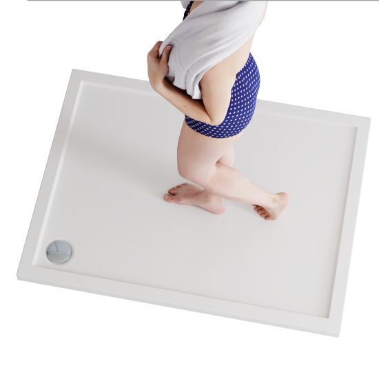 Brodzik został zaprojektowany z myślą o maksymalnej wygodzie i funkcjonalności codziennego użytkowania. Delikatne spady konstrukcyjne na powierzchni brodzika zapewniają szybkie i efektywne odprowadzanie wody do odpływu, zapobiegając jej gromadzeniu się na powierzchni. Precyzyjnie zaprojektowane nachylenie gwarantuje komfort natrysku bez wpływu na estetykę powierzchni — brodzik zachowuje elegancki, płaski wygląd. Delikatne spady występują także na krawędziach brodzika, na których wspiera się kabina prysznicowa, skutecznie chroniąc przed zatrzymywaniem się wody na styku elementów.