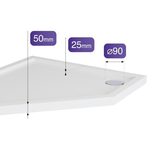 Brodzik Nivaro Ultra PT łączy w sobie nowoczesny wygląd i codzienną funkcjonalność. Wysokość całkowita 50 mm zapewnia łatwe wejście do strefy prysznicowej i lekkość aranżacyjną nawet w niewielkich łazienkach. Głębokość brodzika 25 mm gwarantuje wygodne korzystanie z natrysku, skutecznie chroniąc przed przelaniem się wody. Standardowa średnica odpływu 90 mm umożliwia szybkie i sprawne odprowadzanie wody oraz stosowanie syfonów z mechanizmem łatwego czyszczenia od góry. Płaska konstrukcja brodzika to idealne połączenie estetyki i komfortu użytkowania na co dzień.
