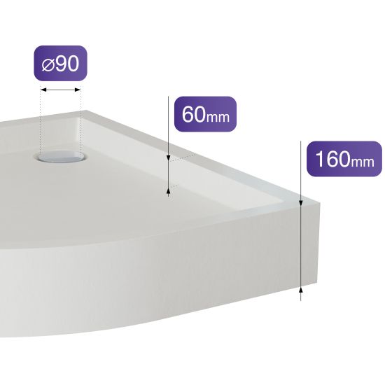 Brodzik Quaro A to solidne i uniwersalne rozwiązanie dla wszystkich, którzy cenią sobie niezawodność i komfort montażowy. Wysokość całkowita 160 mm zapewnia możliwość podłączenia syfonu od brodzika do pionu kanalizacyjnego bez konieczności ingerencji w posadzkę. To nie tylko przyśpieszenie montażu samego brodzika, ale również ograniczenie do minimum kosztów montażowych. Głębokość brodzika 60 mm zapewnia wygodne korzystanie nawet przy intensywnym natrysku, minimalizując ryzyko przelania się wody. Standardowa średnica odpływu 90 mm gwarantuje szybkie i efektywne odprowadzanie wody oraz możliwość stosowania syfonów z mechanizmem łatwego czyszczenia od góry.