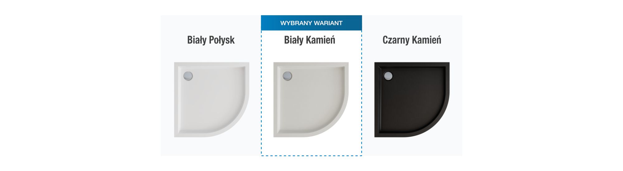 Brodzik Schedline Quaro A dostępny jest w trzech wariantach wykończenia: klasycznym białym połysku (RAL9003) oraz dwóch wykończeniach z elegancką strukturą kamienia: biały kamień (RAL9016) oraz czarny kamień (RAL9004).