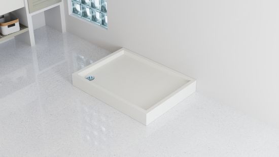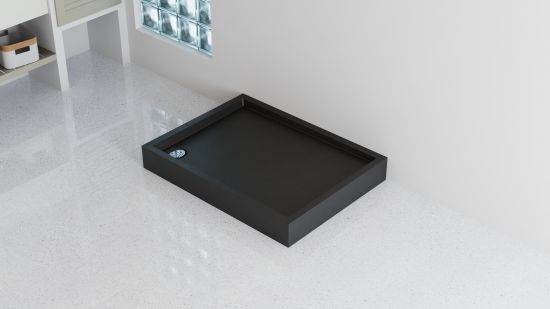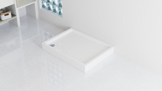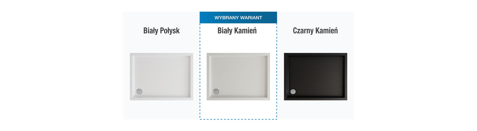 Brodzik Schedline Quaro D dostępny jest w trzech wariantach wykończenia: klasycznym białym połysku (RAL9003) oraz dwóch wykończeniach z elegancką strukturą kamienia: biały kamień (RAL9016) oraz czarny kamień (RAL9004).