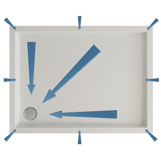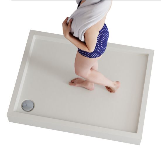 Brodzik został zaprojektowany z myślą o maksymalnej wygodzie i funkcjonalności codziennego użytkowania. Delikatne spady konstrukcyjne na powierzchni brodzika zapewniają szybkie i efektywne odprowadzanie wody do odpływu, zapobiegając jej gromadzeniu się na powierzchni. Precyzyjnie zaprojektowane nachylenie gwarantuje komfort natrysku bez wpływu na estetykę powierzchni — brodzik zachowuje elegancki, płaski wygląd. Delikatne spady występują także na krawędziach brodzika, na których wspiera się kabina prysznicowa, skutecznie chroniąc przed zatrzymywaniem się wody na styku elementów.