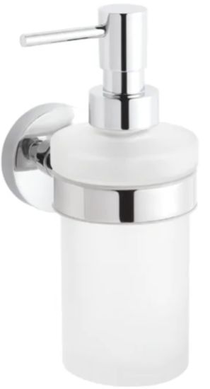 • szklany pojemnik na mydło o matowym wykończeniu z metalową pompką i uchwytem