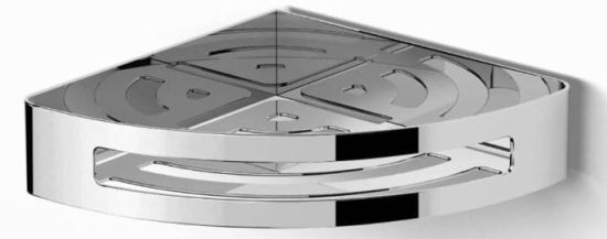 Funkcjonalny narożny koszyk łazienkowy, wykonany ze stali nierdzewnej odpornej na korozję.