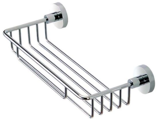 Funkcjonalny koszyk mosiężny, ułatwiający zagospodarowanie przestrzeni w łazience.