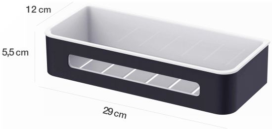 Funkcjonalny koszyk łazienkowy, wykonany z najwyższej jakości metalu odpornego na korozję, wyposażony w ergonomiczny wkład z tworzywa sztucznego.