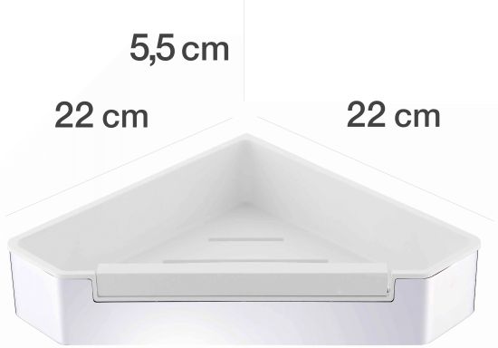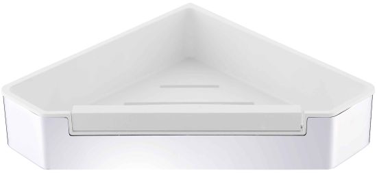 Funkcjonalny koszyk łazienkowy narożny, wykonany ze stali nierdzewnej odpornej na korozję, wyposażony w ergonomiczny wkład z tworzywa sztucznego.