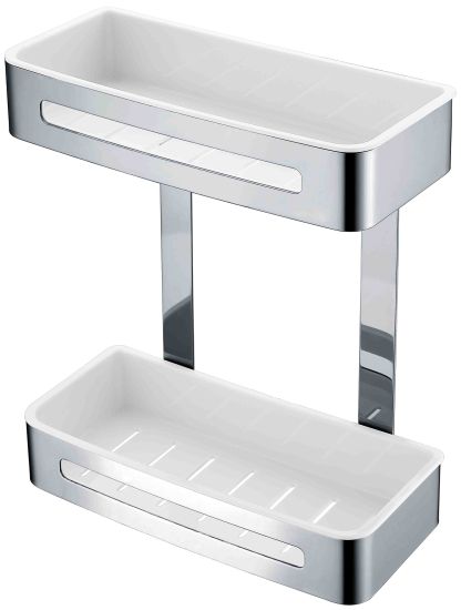 Funkcjonalny, podwójny koszyk łazienkowy, wykonany ze stali nierdzewnej odpornej na korozję, wyposażony w ergonomiczne wkłady z tworzywa sztucznego.