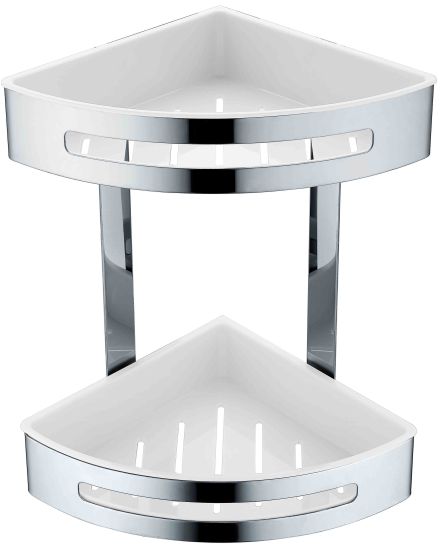 Funkcjonalny, podwójny koszyk łazienkowy, wykonany ze stali nierdzewnej odpornej na korozję, wyposażony w ergonomiczne wkłady z tworzywa sztucznego.