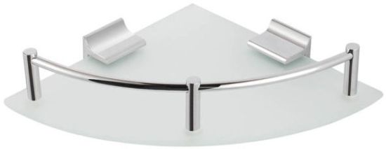 Funkcjonalna narożna półka łazienkowa, wykonana z mosiądzu i bezpiecznego szkła hartowanego.