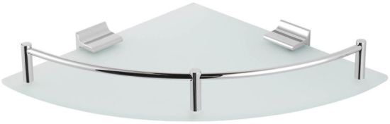 Funkcjonalna narożna półka łazienkowa, wykonana z mosiądzu i bezpiecznego szkła hartowanego.