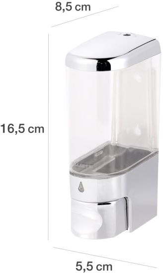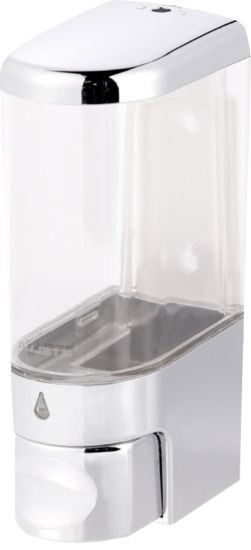 Nowoczesny wiszący dozownik wykonany z wytrzymałego tworzywa, który może zostać wykorzystany zarówno do mydła w płynie jak i środków do dezynfekcji rąk.
