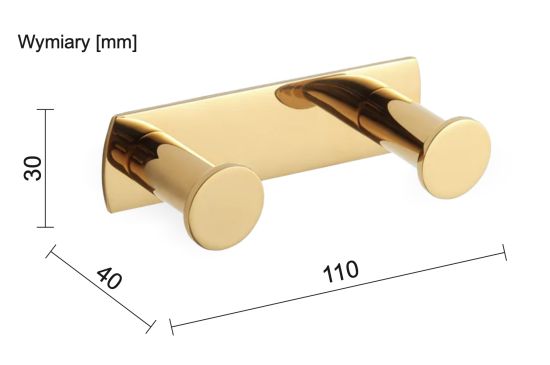 Nowoczesny, podwójny haczyk łazienkowy STELLA, osadzony na listwie.