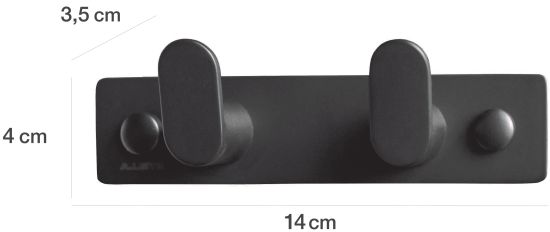Funkcjonalna listwa z dwoma haczykami, wykonana z najwyższej jakości metalu odpornego na korozję.