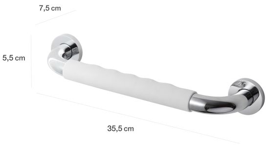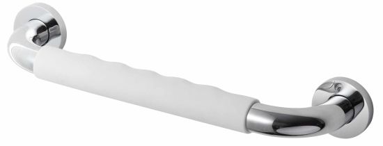Nowoczesny metalowy uchwyt łazienkowy, odporny na korozję dzięki specjalnej chromowej powłoce.