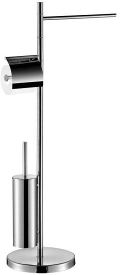 Funkcjonalny stojący wieszak na ręczniki, zintegrowany ze szczotką do WC, odporny na korozję dzięki specjalnej chromowej powłoce.