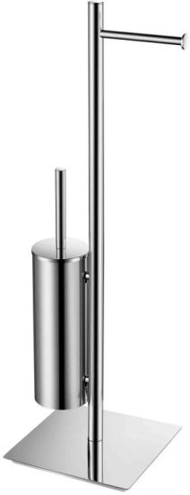 Funkcjonalny stojący wieszak na papier toaletowy, zintegrowany ze szczotką do WC, odporny na korozję dzięki specjalnej chromowej powłoce.