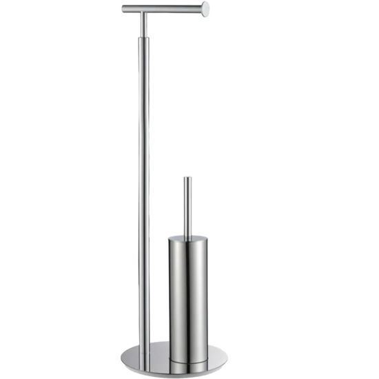 Funkcjonalny stojący wieszak na papier toaletowy, zintegrowany ze szczotką do WC, wykonany z najwyższej jakości materiałów.