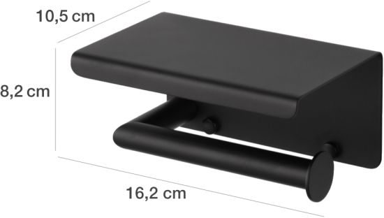 Nowoczesny uchwyt na papier toaletowy z półką STELLA, wykonany z najwyższej jakości metalu odpornego na korozję.
