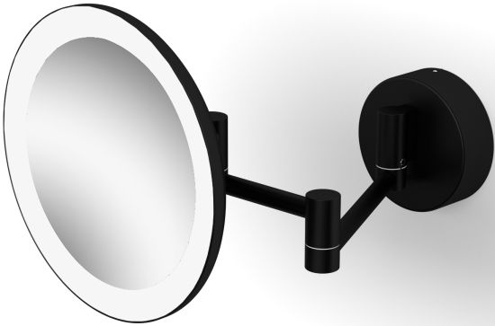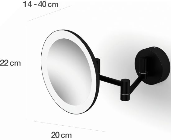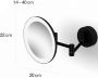Funkcjonalne lusterko kosmetyczne powiększające, wyposażone w podświetlenie LED, osadzone na podwójnym ruchomym ramieniu.