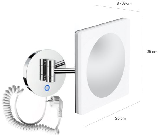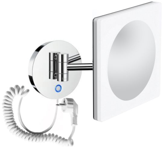 Funkcjonalne lusterko kosmetyczne powiększające, wyposazone w podświetlenie LED, na podwójnym ruchomym ramieniu.