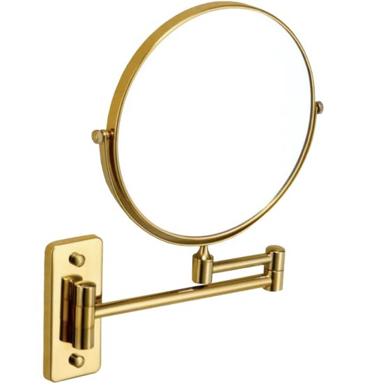 Funkcjonalne lusterko kosmetyczne powiększające, osadzone na podwójnym ruchomym ramieniu.