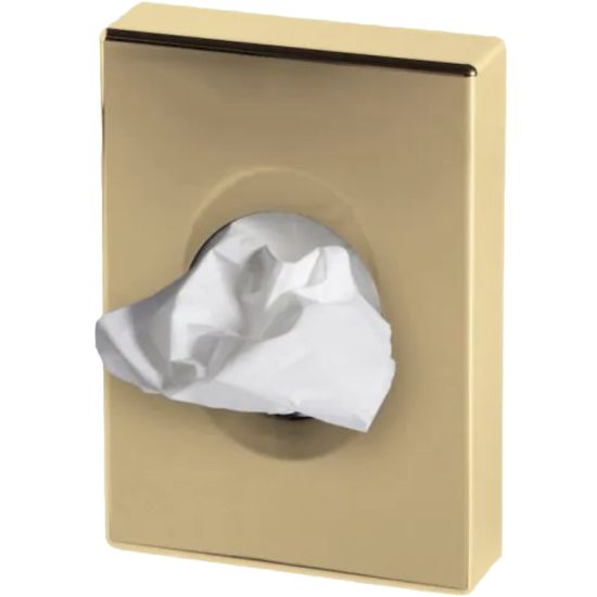 Pojemnik na torebki higieniczne STELLA w uniwersalnym złotym kolorze, rekomendowany do pokoi i łazienek hotelowych.