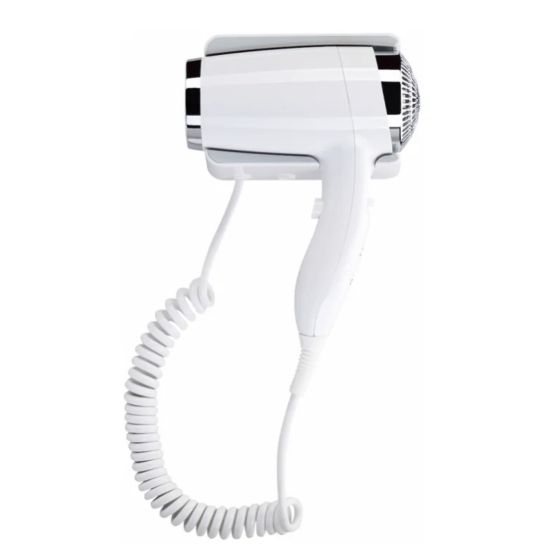 Suszarka do włosów z uchwytem przeznaczonym do montażu ściennego.