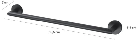 Nowoczesny wieszak na ręczniki w kolorze czarnym, wykonany z metalu.