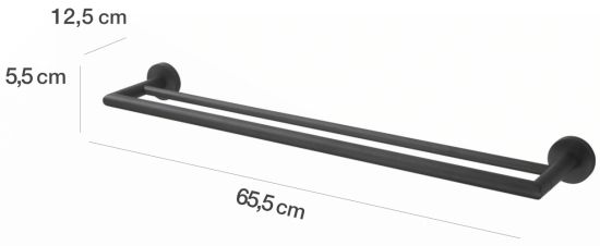 Nowoczesny podwójny wieszak na ręczniki, wykonany z najwyższej jakości metalu wykończonego czarną, matową powłoką.