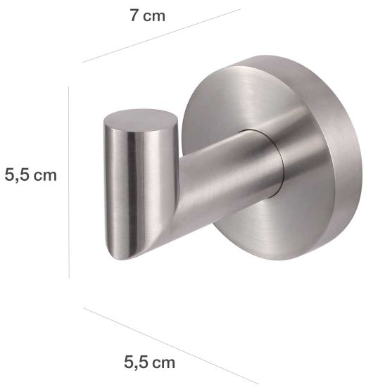 Nowoczesny, pojedynczy haczyk łazienkowy STELLA Classic, dostępny w kolorze stali szczotkowanej