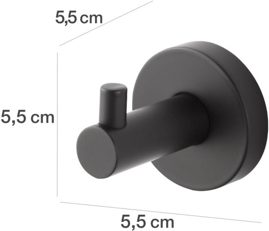 Nowoczesny, pojedynczy haczyk łazienkowy STELLA Classic, dostępny w czarnym, matowym kolorze.