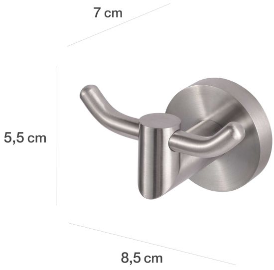 Nowoczesny, podwójny haczyk łazienkowy STELLA Classic, wykonany ze stali szczotkowanej