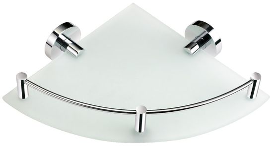 Nowoczesna narożna półka łazienkowa, odporna na korozję, stanowiąca funkcjonalne dopełnienie aranżacji łazienki.