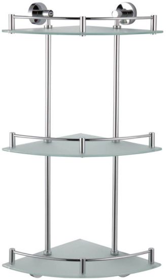 Nowoczesna narożna półka łazienkowa, odporna na korozję, stanowiąca funkcjonalne dopełnienie aranżacji łazienki.