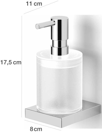 Nowoczesny dozownik wiszący STELLA Kobe, wykonany z najwyższej jakości metalu odpornego na korozję oraz matowego szkła.