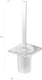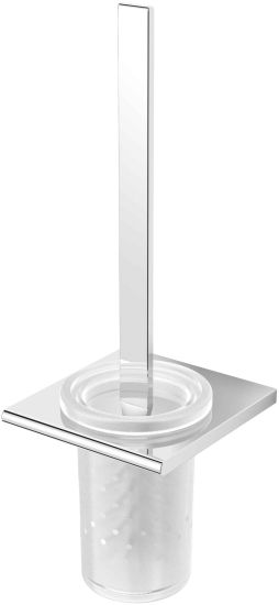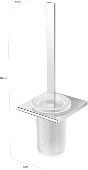 Nowoczesna wisząca szczotka do WC, wykonana z metalu i szkła matowego.