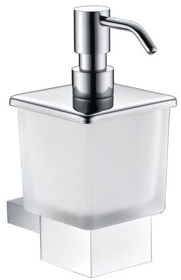 Nowoczesny dozownik wiszący w metalowej obudowie, wykonany z mosiądzu i matowego szkła.