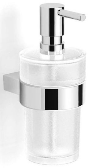 Nowoczesny dozownik wiszący, wykonany z mosiądzu i matowego szkła.