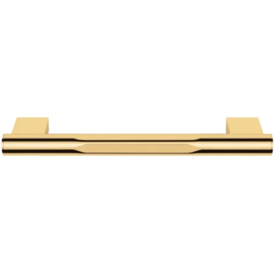 Nowoczesny uchwyt łazienkowy w atrakcyjnym złotym wykończeniu.