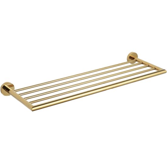 Nowoczesna półka na ręczniki, wykonana z wysokiej jakości stali nierdzewnej oraz mosiądzu.