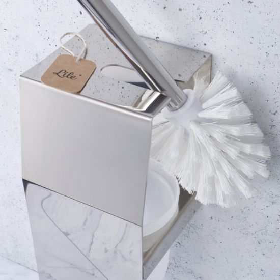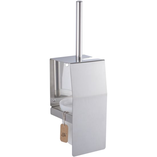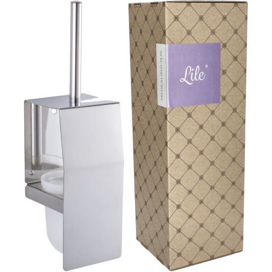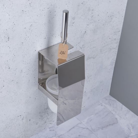 Funkcjonalna wisząca szczotka do WC z osłonką, wykonana z wysokiej jakości stali nierdzewnej.
